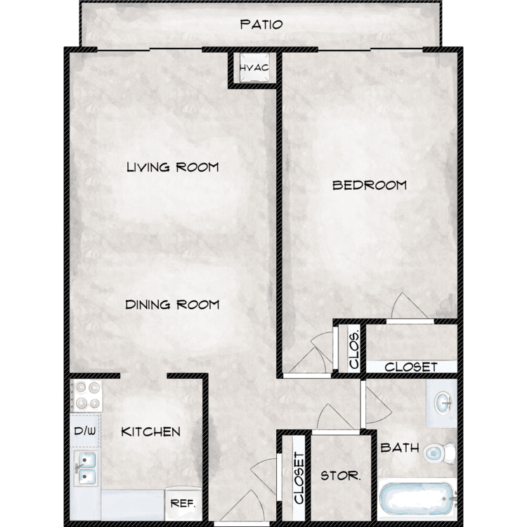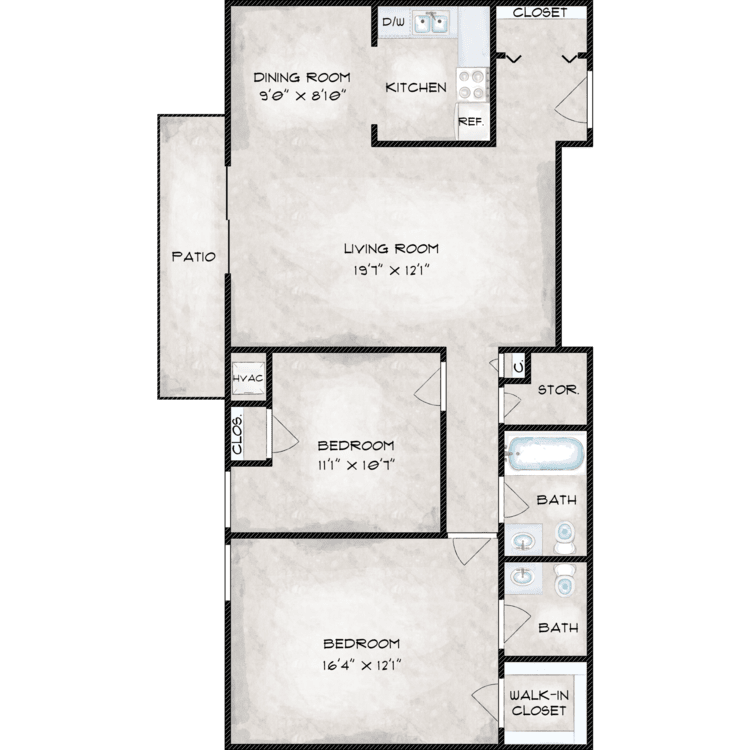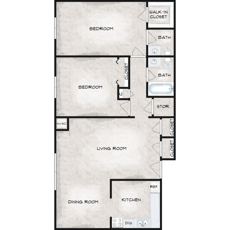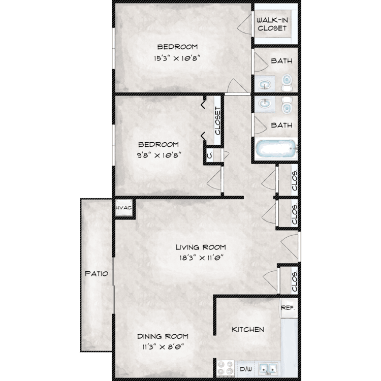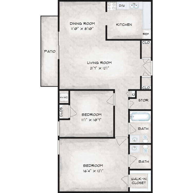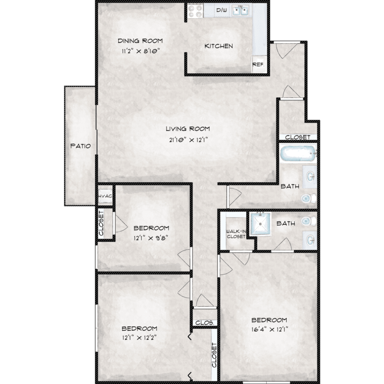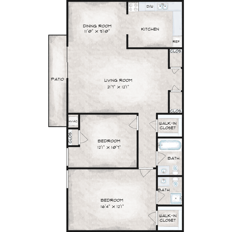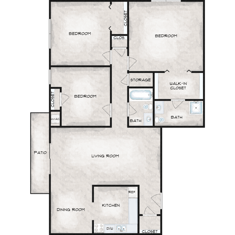 Our pet-friendly one, two, and three-bedroom apartments for rent are designed to meet your satisfaction. Each floor plan features personal balconies or patios ideal for lunches with friends, as well as ceiling fans to keep you cool year-round. Prepare a gourmet meal in the fully equipped kitchen, which features a gas range and dishwasher. Uncover your new sanctuary, complete with oversized walk-in closets with shelving for ultimate organization and relaxation.