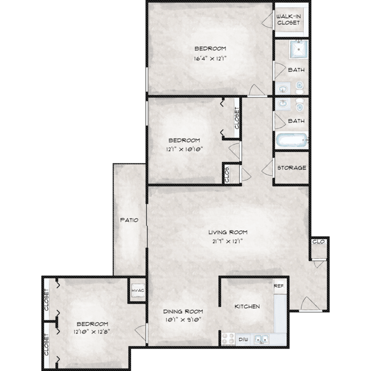 - One, Two, and Three-Bedroom Apartments up to 1,476 Sq. Ft